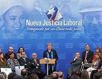 Con una ceremonia oficial encabezada por la Presidenta de la República, Michelle Bachelet, junto al presidente (s) de la Corte Suprema, Milton Juica, y los ministros de Justicia, Carlos Maldonado, y del Trabajo, Osvaldo Andrade, se celebró hoy en Punta Arenas el inicio de la entrada en vigencia gradual de la Nueva Justicia Laboral, iniciativa que permitirá solucionar las controversias entre empleadores y trabajadores a través de juicios rápidos, orales, públicos y en igualdad de condiciones para las partes.