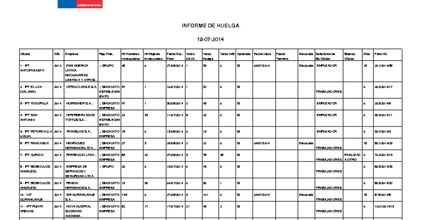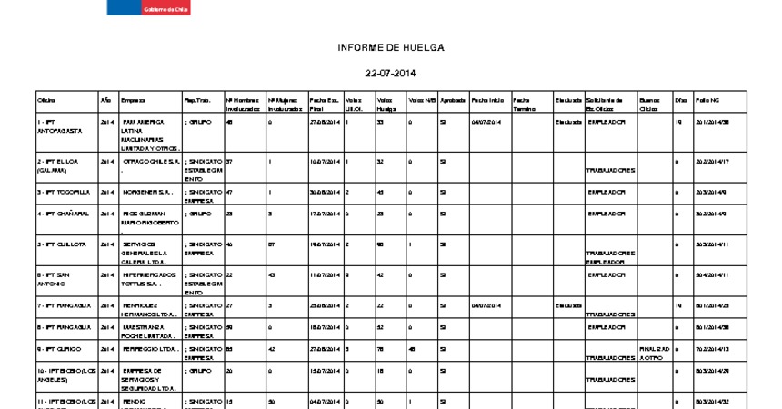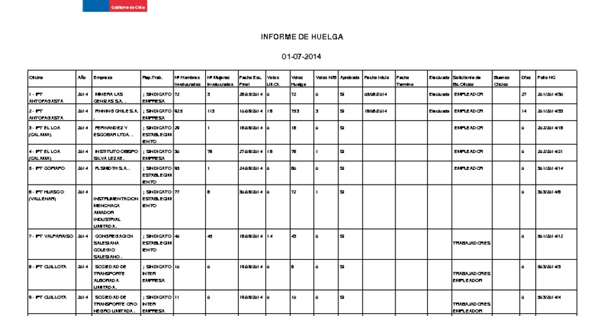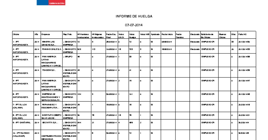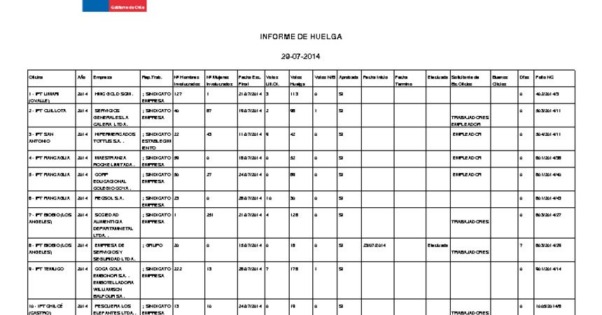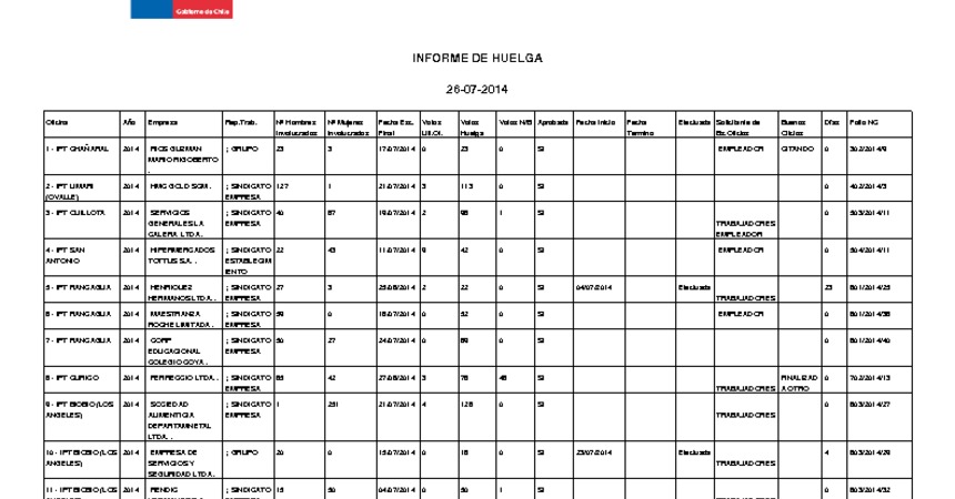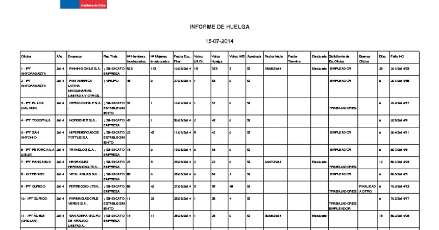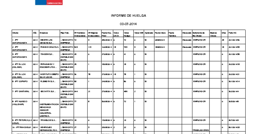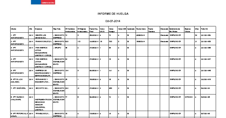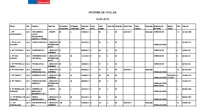 Publicaciones / Estadísticas / Informes Estadísticos / Informe diario de huelgas