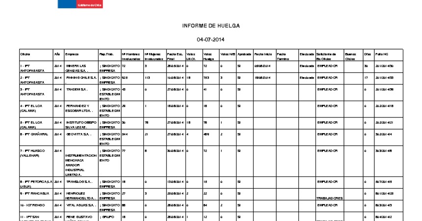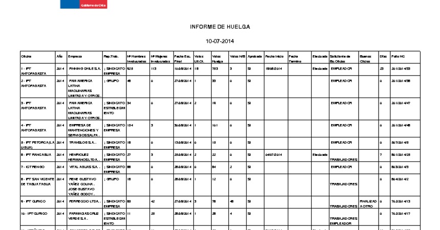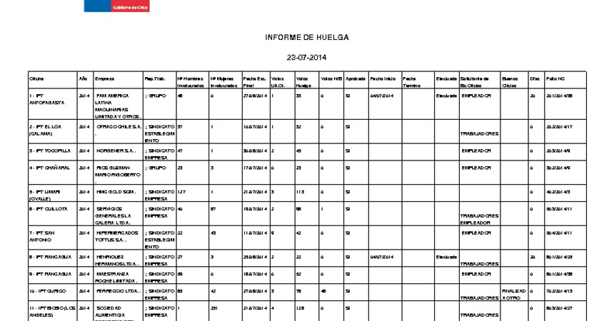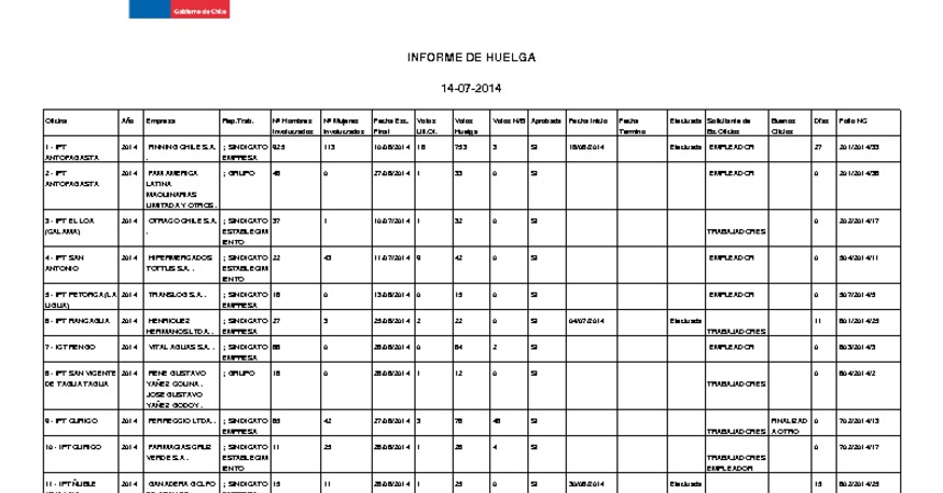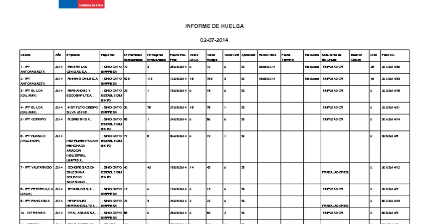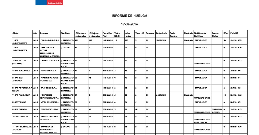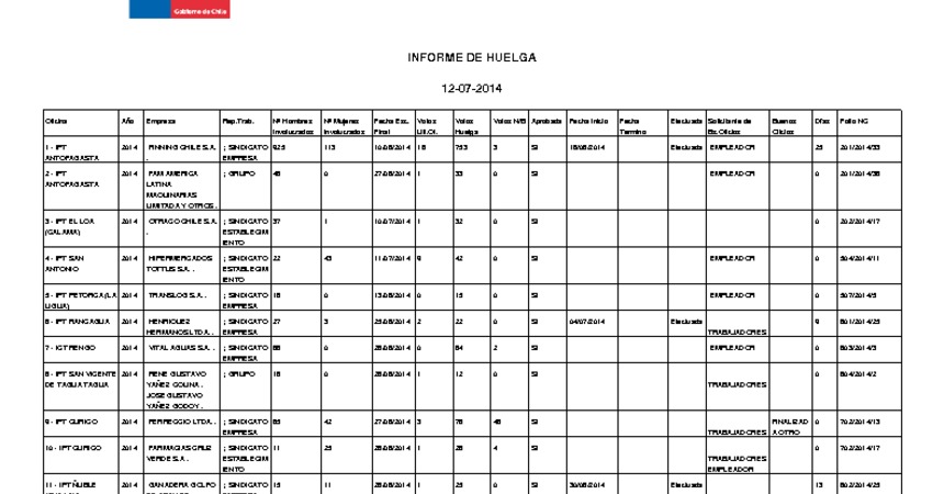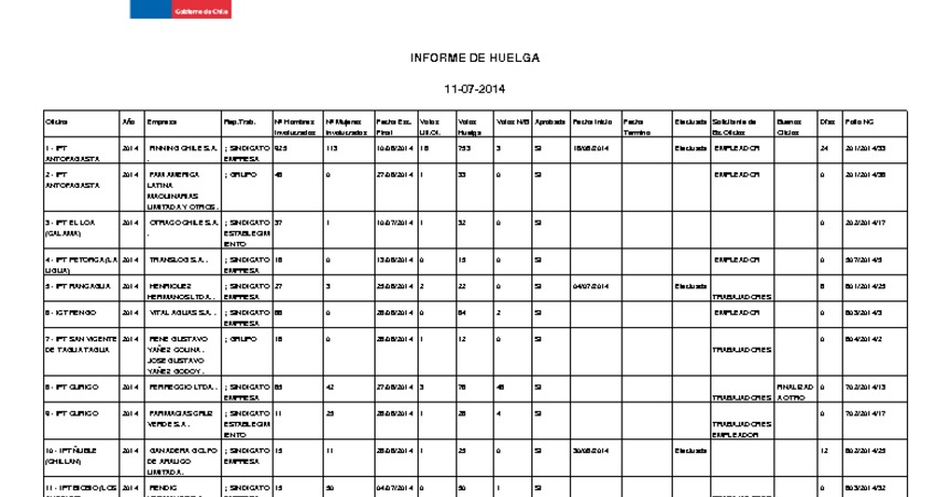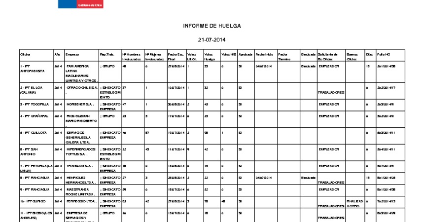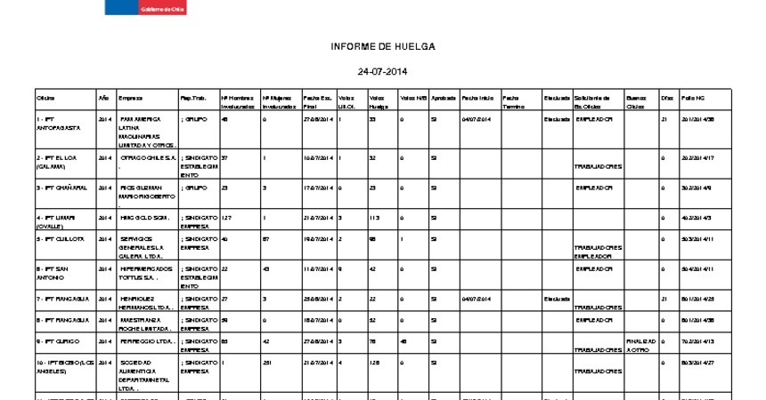 Publicaciones / Estadísticas / Informes Estadísticos / Informe diario de huelgas