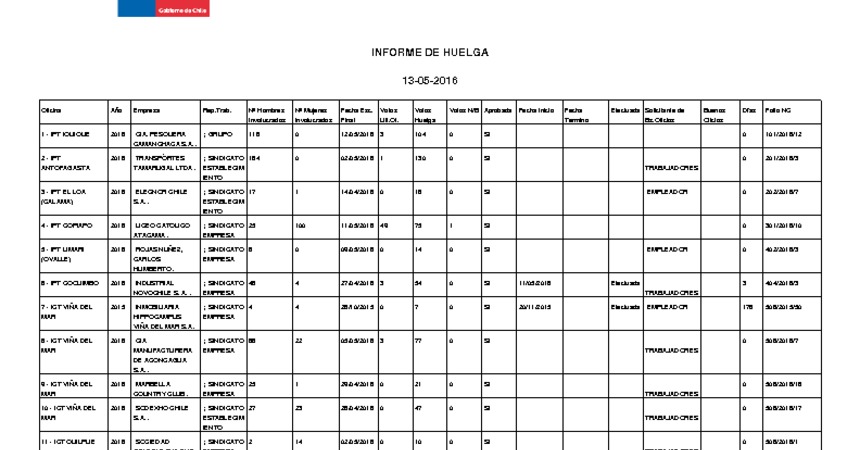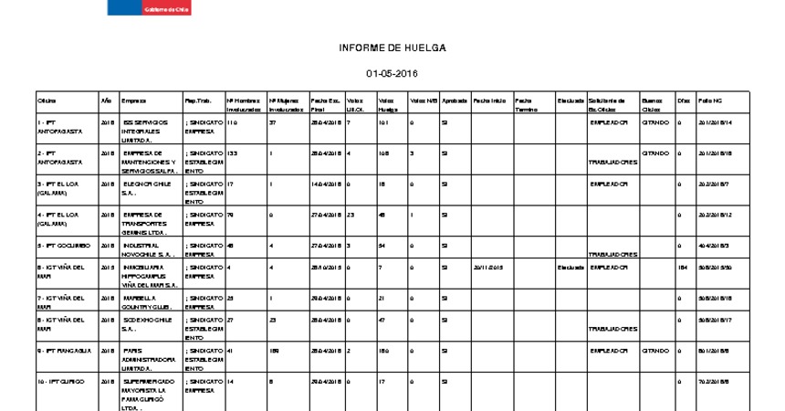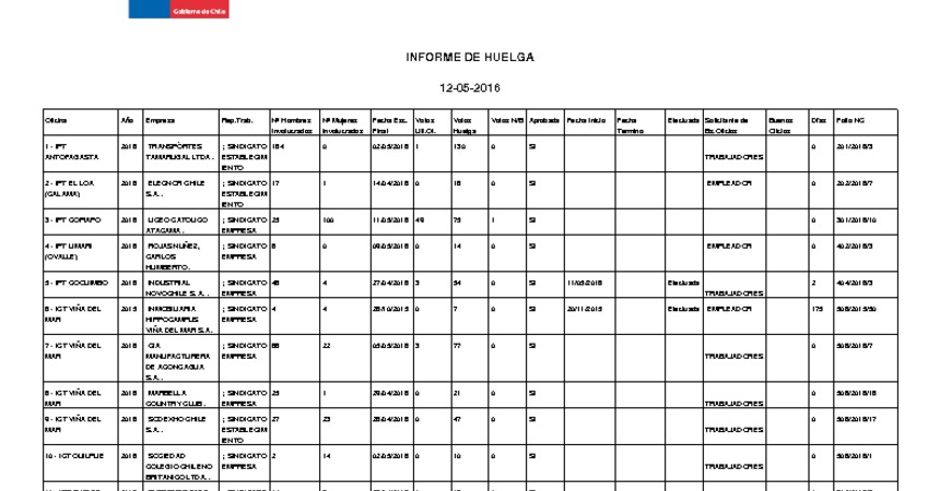 Informe diario de huelgas legales mayo 2016