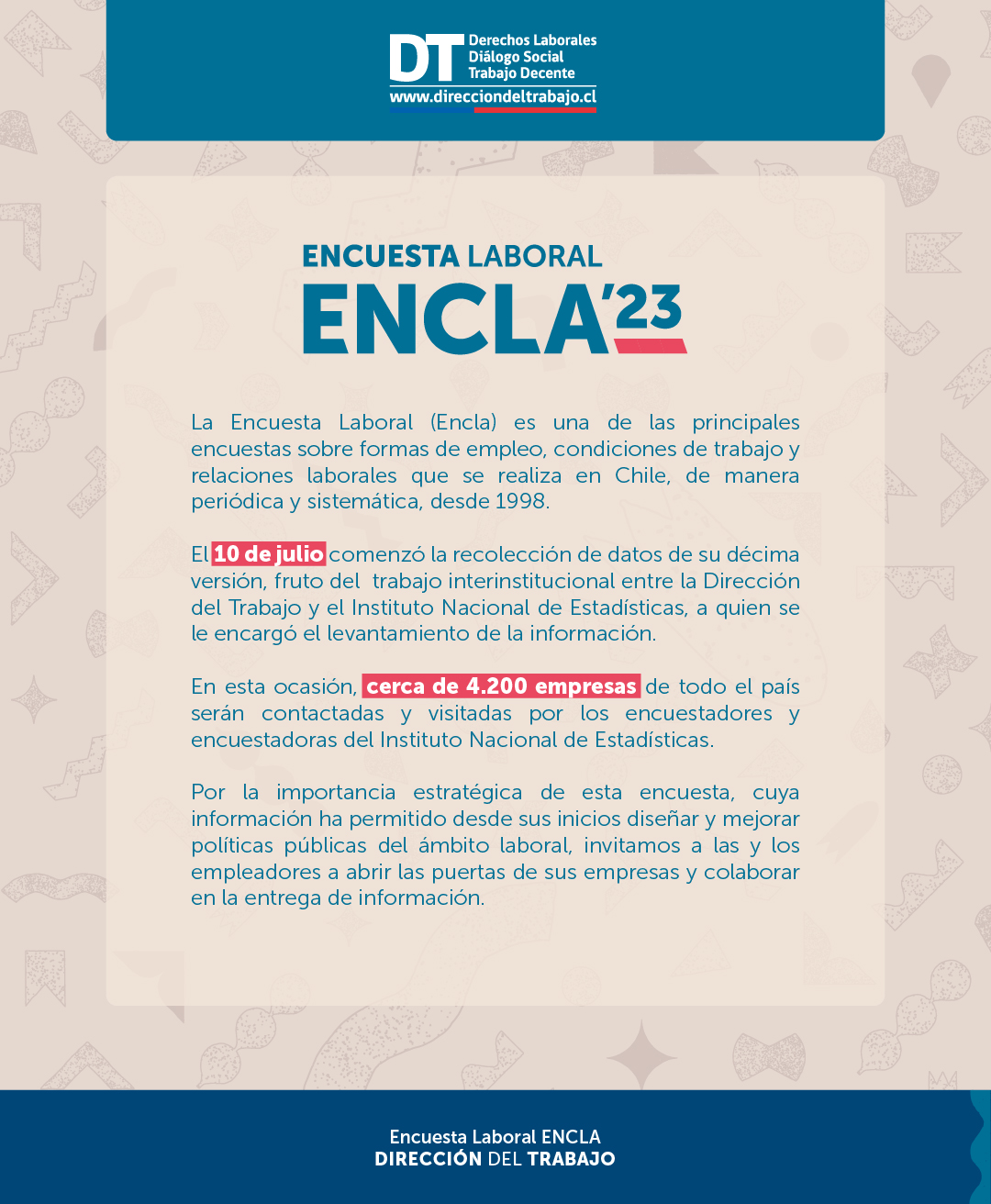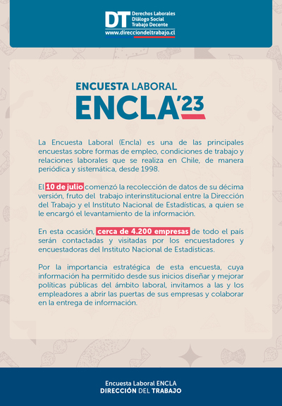 El inicio del trabajo en terreno de la ENCLA 2023 permitirá obtener una radiografía de las relaciones laborales, condiciones de empleo, trabajo e igualdad de género en las empresas del país.
