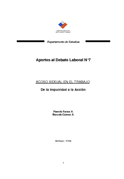 Junto con actualizar el estado de la discusión que se ha seguido en Chile respecto del acoso sexual en el trabajo, el presente documento revela la experiencia pionera que un servicio público dedicado a la fiscalización e interpretación de la normativa laboral ha desarrollado para abordar este complejo tema. En efecto, aún cuando en Chile no existe una legislación específica respecto del acoso sexual en el mundo laboral, la Dirección del Trabajo resolvió actuar en la materia entendiendo que se trata de conducta evidentemente abusiva, que lesiona la dignidad y honra de los trabajadores y que viola las disposiciones de carácter general establecidas para resguardar esos derechos en la Constitución Política y en el Código del Trabajo.