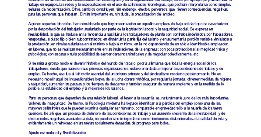 Tema Laboral Nº5: Precarización del empleo ¿Un mal moderno? (1997)