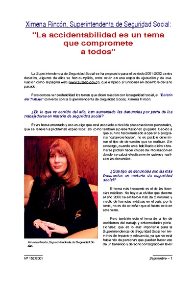 ENTREVISTA. Ximena Rincón, Superintendenta de Seguridad Social: "LA ACCIDENTABILIDAD ES UN TEMA QUE COMPROMETE A TODOS".