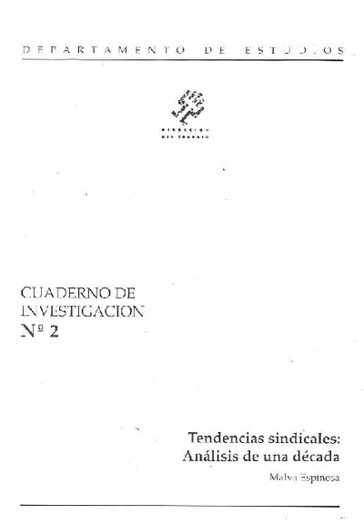 En el Cuaderno de investigación nº2 se analizan las tendencias de desarrollo sindical a partir de las series estadísticas que registra la Dirección del Trabajo, tomando como período desde 1986 a 1995. De acuerdo con la disponibilidad de datos; algunos indicadores consideran un período mayor.