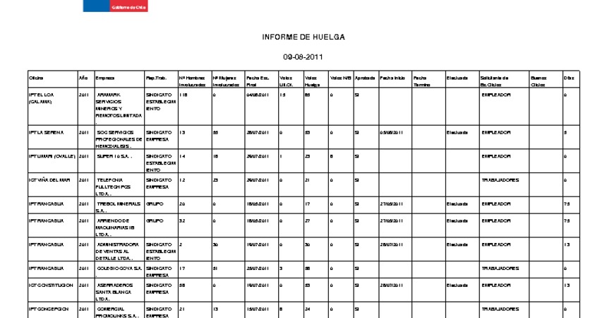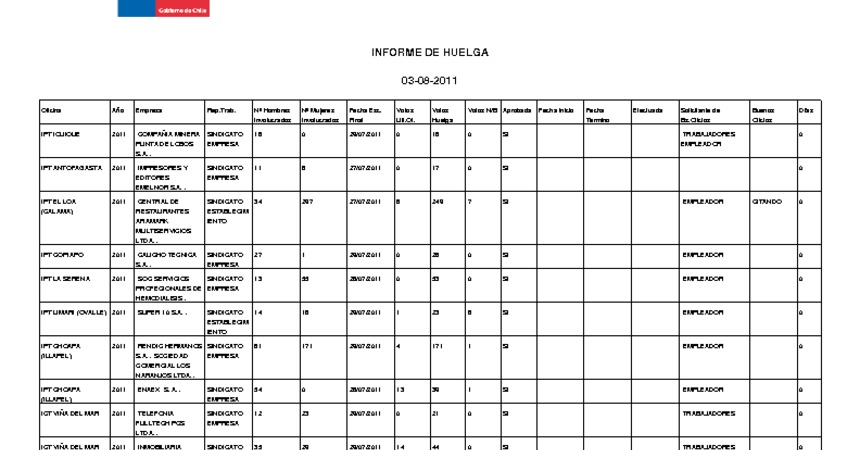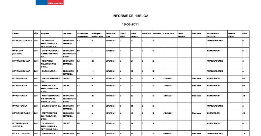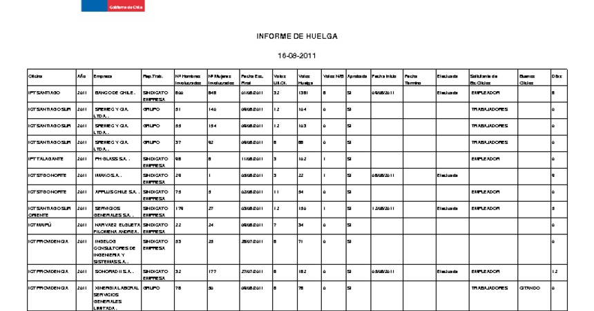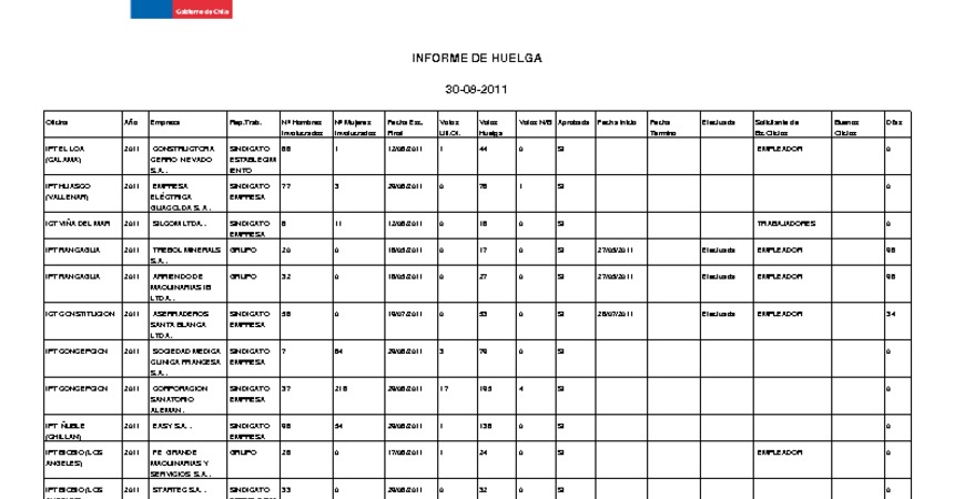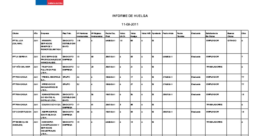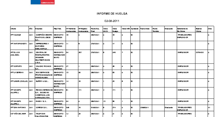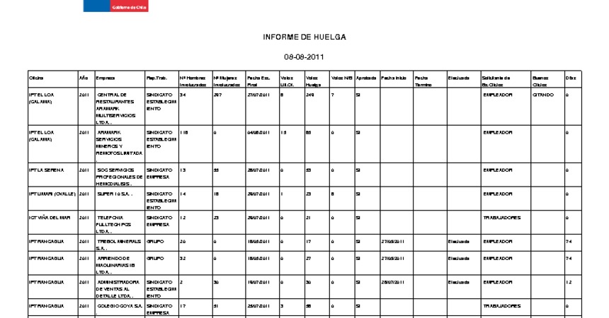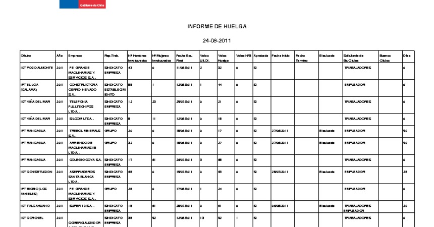 Informe diario de huelgas legales agosto 2011