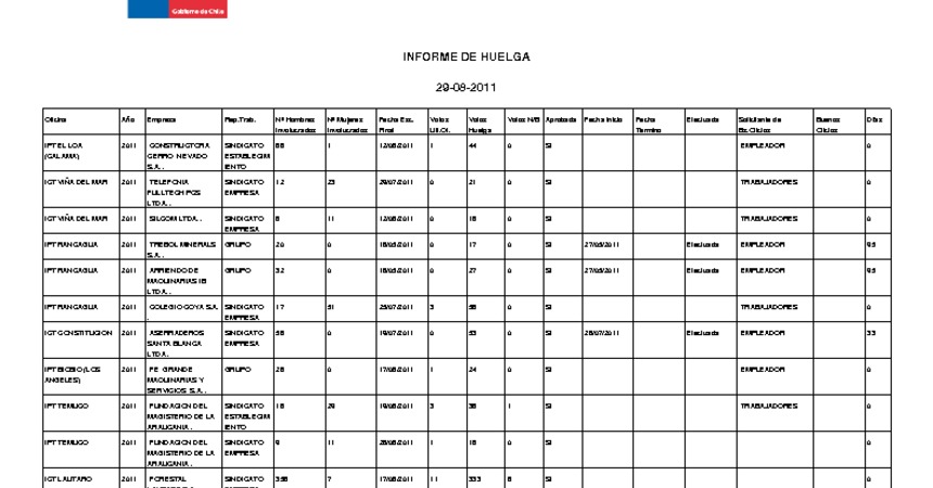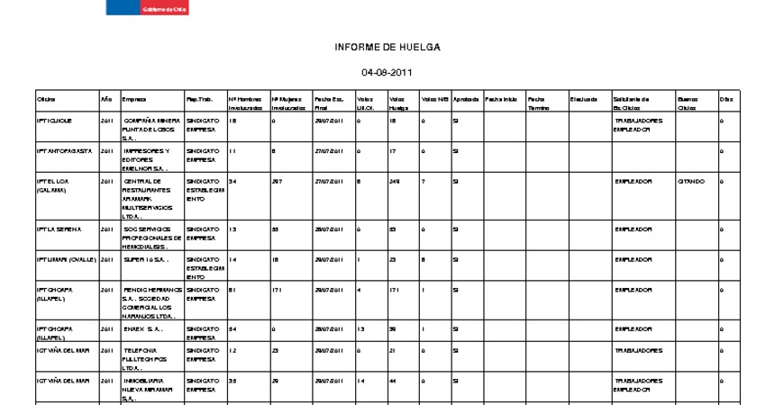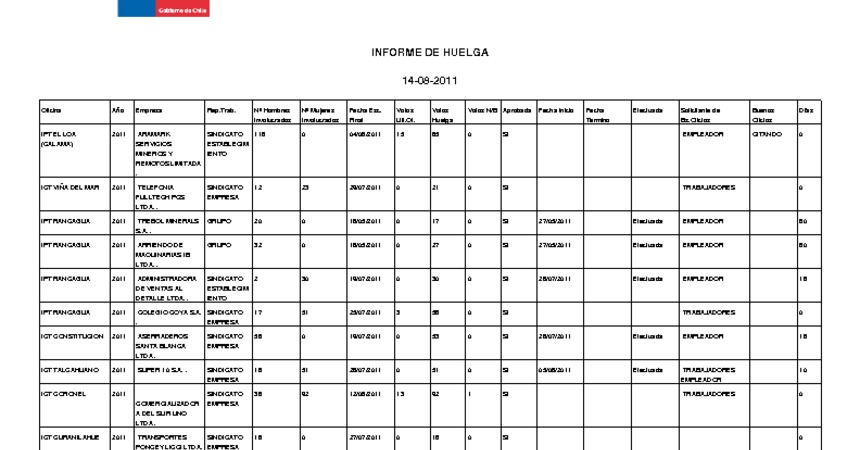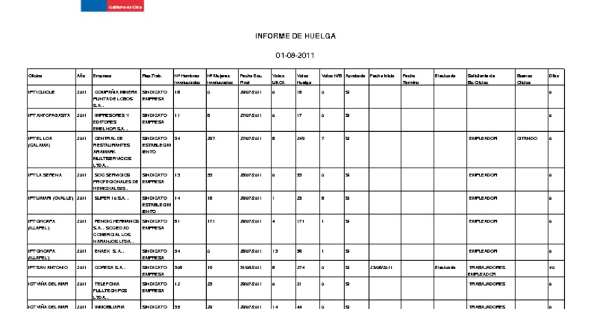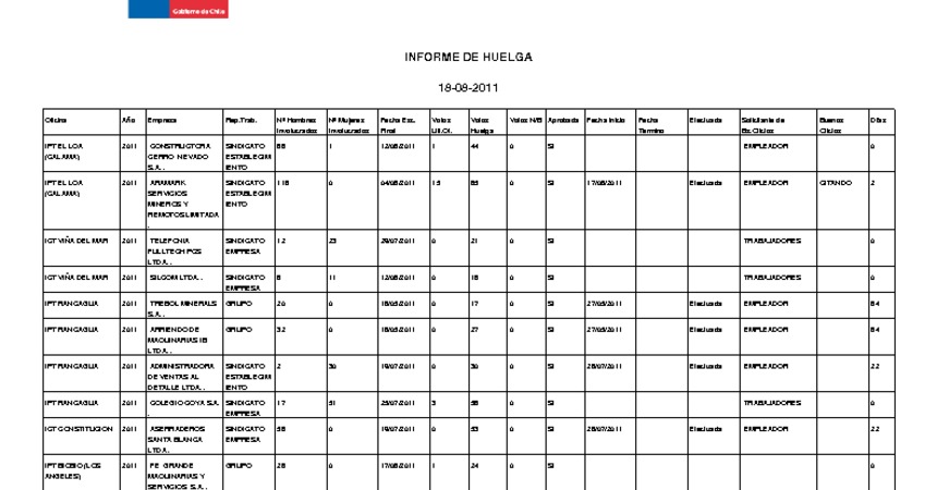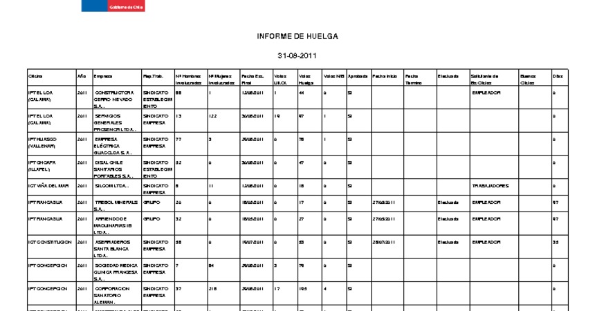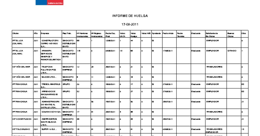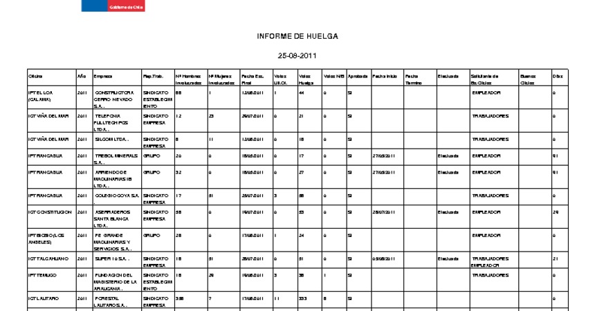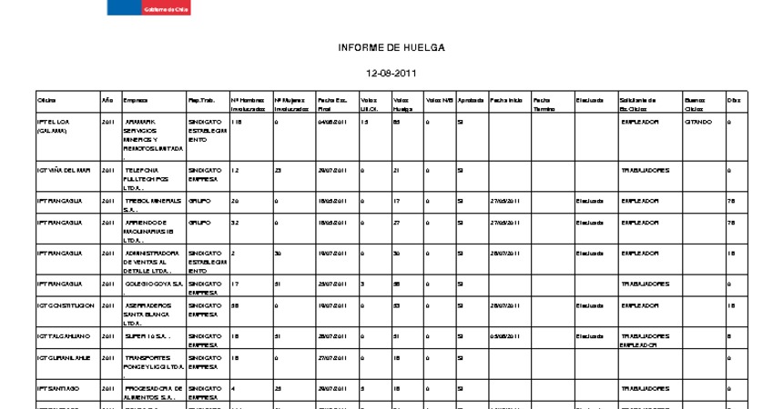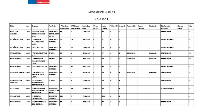 Informe diario de huelgas legales agosto 2011