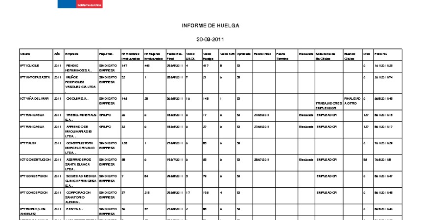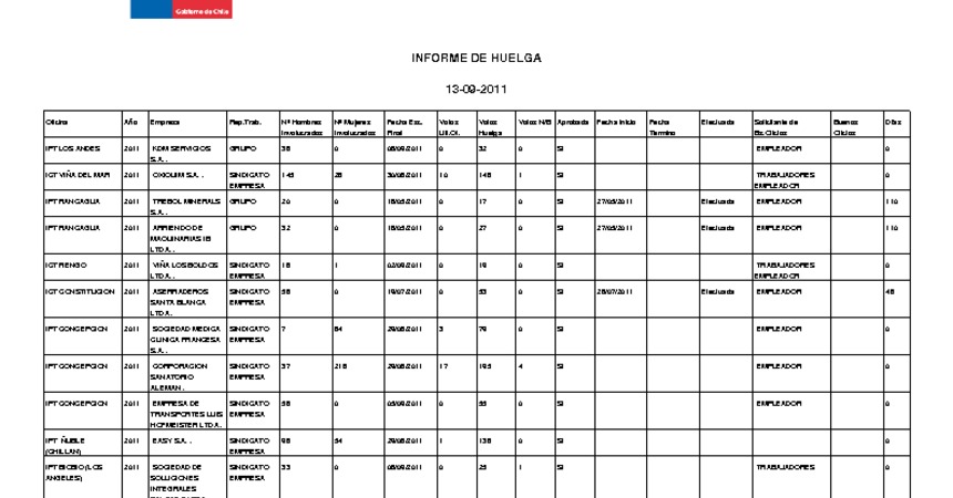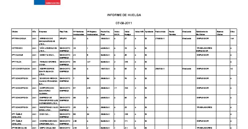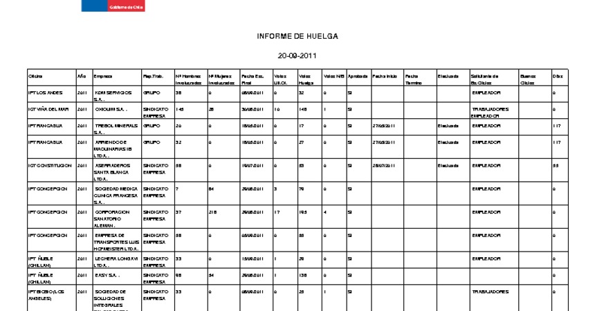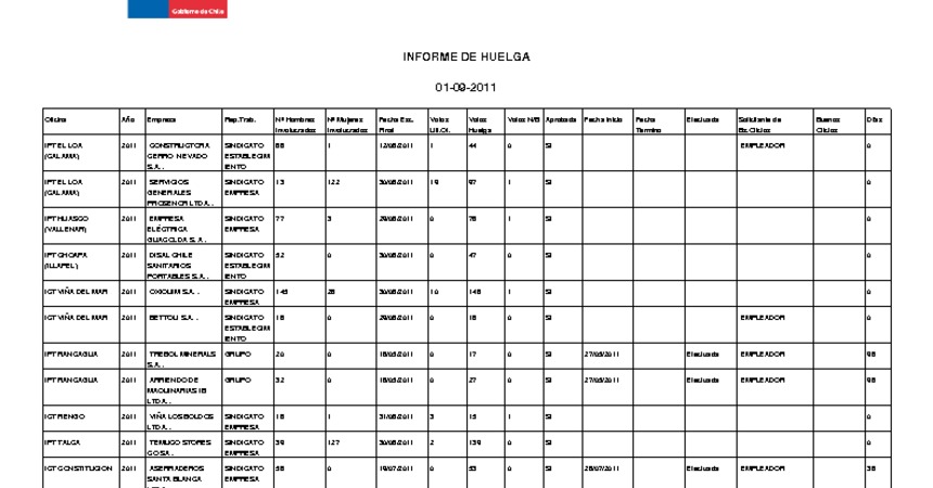 Informe diario de huelgas legales septiembre 2011